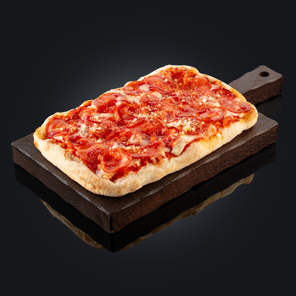 томатный неаполитанский соус, моцарелла, пеперони, чоризо, соус шрирача, мёд, пармезан