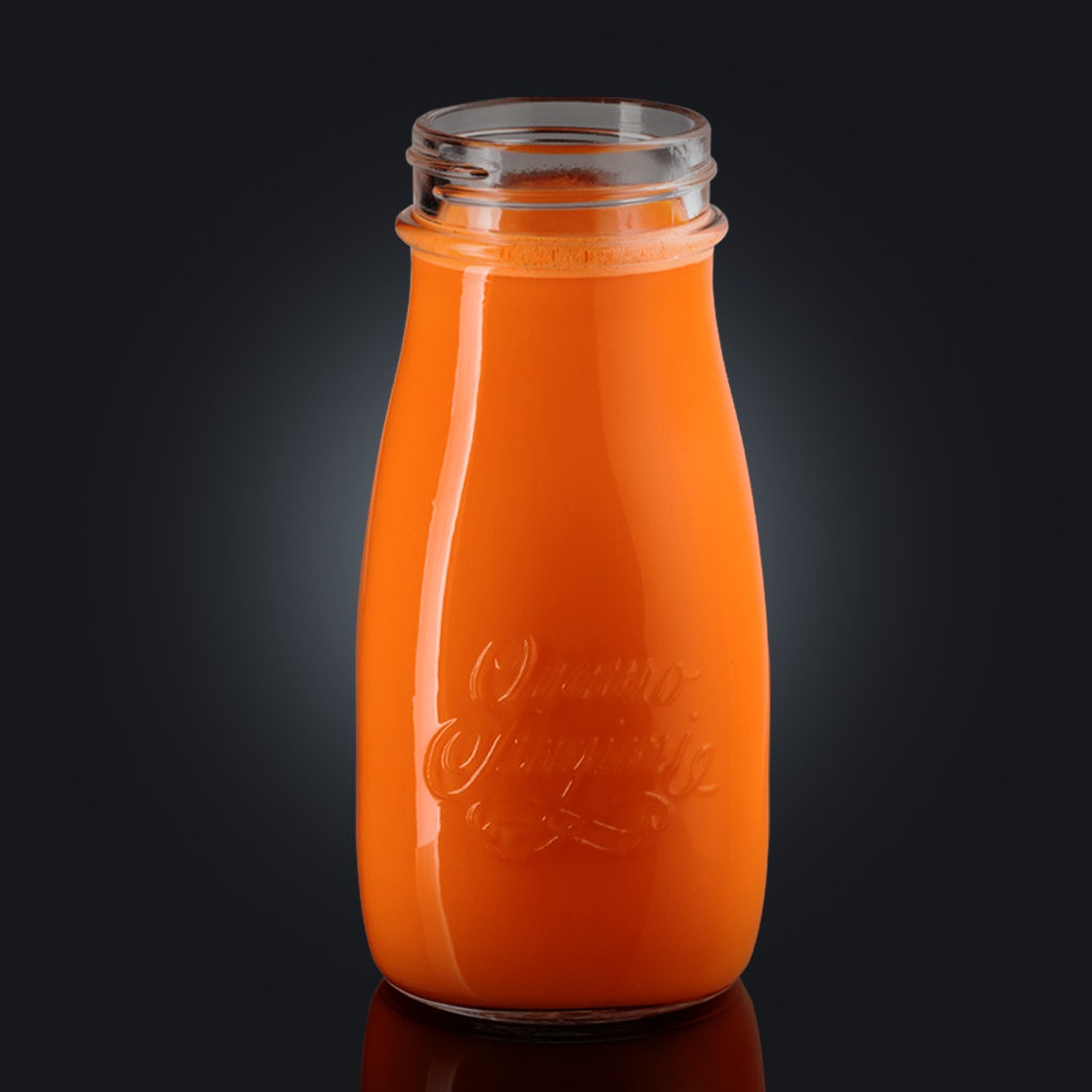 Свежая морковь, кокосовое молоко, сироп карамельный, лёд