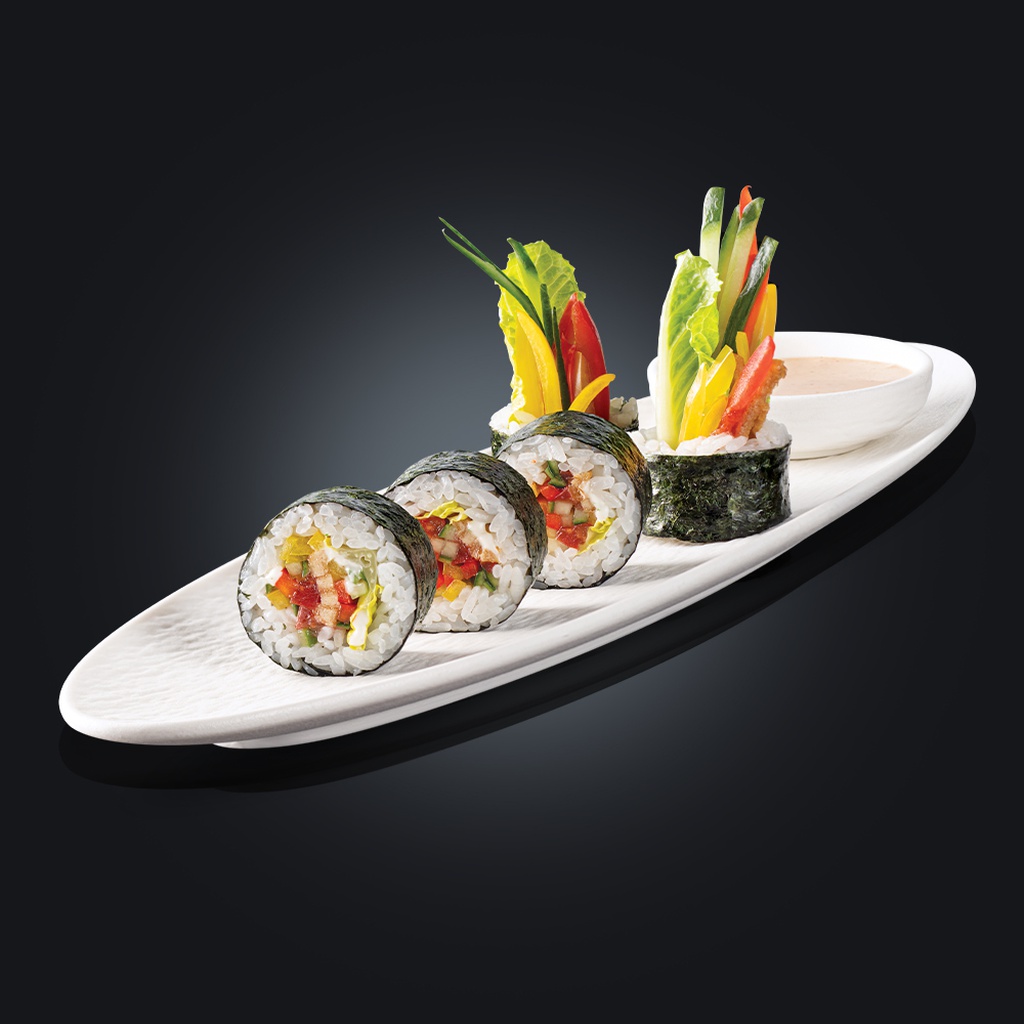 сладкий перец, томаты, огурец, салат романо, маринованный тофу в чесночном соусе. (5 шт.)